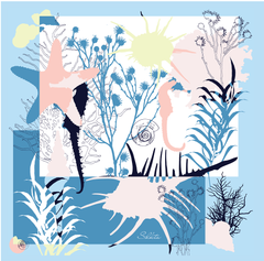 Crafted from premium natural silk, Aqua Fantaisie caresses the skin with the smoothness of liquid silk, drifting lightly with every movement. Each motif is printed with absolute precision, turning the scarf into a moving piece of art. It is a statement of refined luxury- never ostentatious, yet irresistibly captivating.