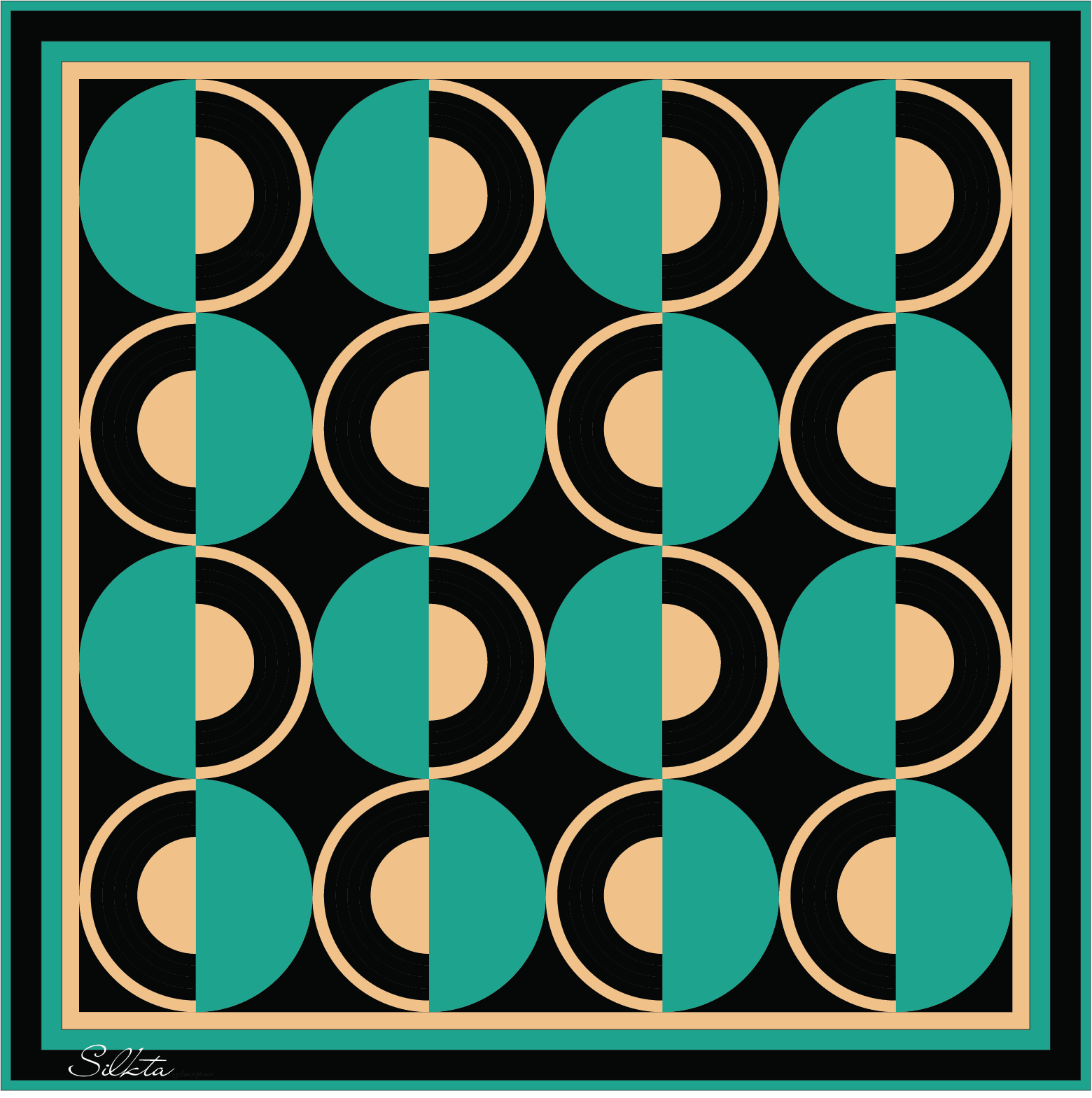 There are moments in life that need no words - just a glance, a gentle movement in the wind is enough to leave an unforgettable impression. “The Echo of Rhythm” is a silk scarf design inspired by the harmony between modern life and timeless elegance. The repeating geometric patterns resemble steady musical rhythms, evoking the nostalgic sound of old vinyl - luxurious, sentimental, and full of artistry.