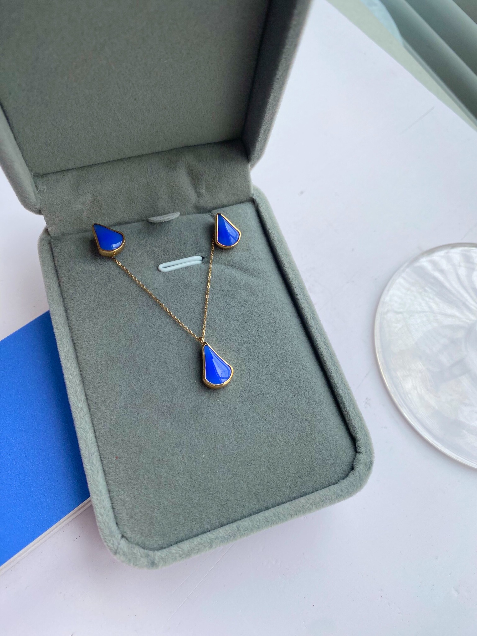 Hoa tai vàng 10K mặt đá Achates màu Blue size 10x7x3 HRBD-014