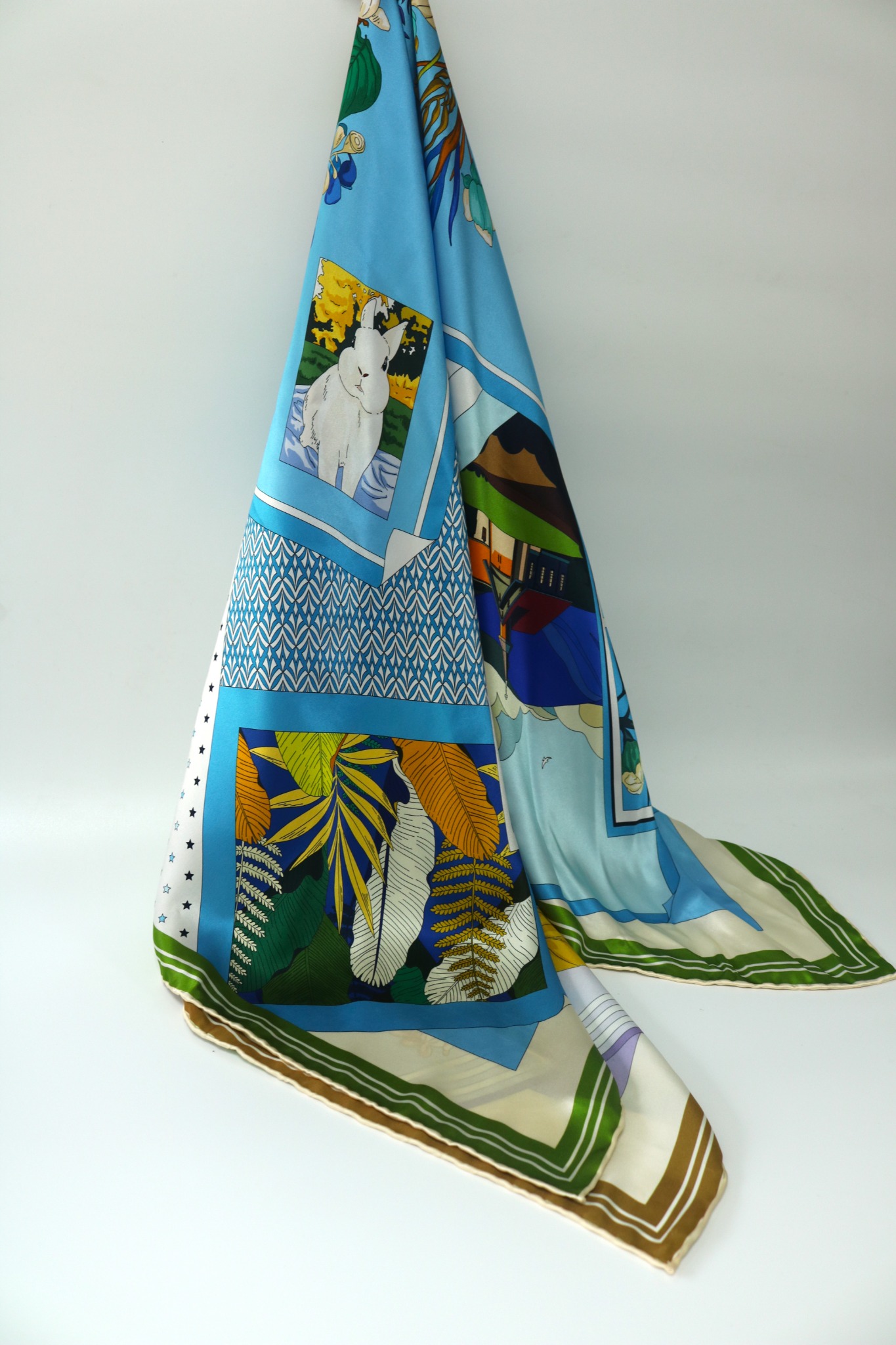 Khăn lụa tơ tằm tự nhiên Việt Nam Giấc mộng xuân - màu xanh