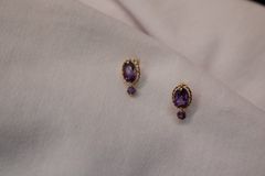 Trang sức Hoa tai nụ K18YG Amethyst 6x4 + 2.5 60858