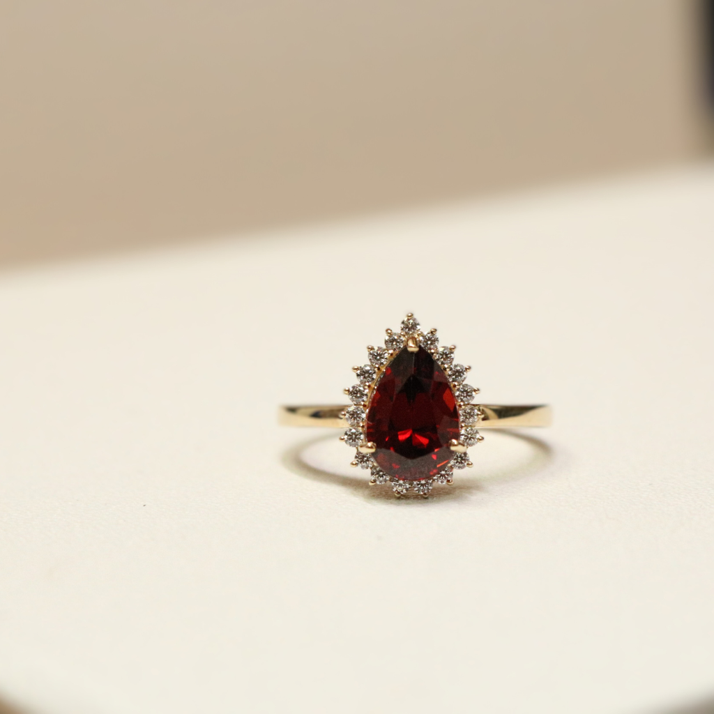 Trang sức nhẫn vàng 10K - đá Garnet 9.5*6.5 HRBD-025